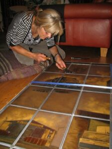 Ik begeef mij enerzijds op traditioneel terrein van de Kunstnijverheid zoals het restaureren en ontwerpen van glaspanelen voor het gebruik in interieurs als ook voor het gebruik als architectonisch element.