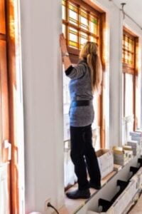 Op de academie is de basis gelegd om de oude ambachtelijke technieken geheel eigen te maken, van het glas in lood zetten, brandschilderen, etsen, ontwerpen tot restaureren. Op het gebied van glasfusing ben ik autodidact. Hierin heb ik intussen al een behoorlijke ontwikkeling doorgemaakt. Glas is een mooi materiaal met heel veel mogelijkheden.